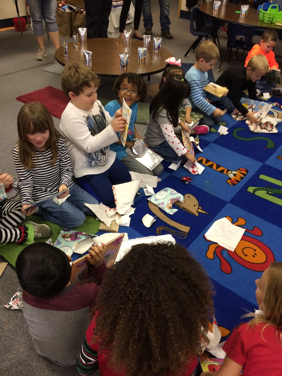 Ecstatic because he got a Superman book during the book exchange! Poor Matao sobbed when he opened a princess book, but then Presley swooped in, all to happy to trade for those glittery princesses.